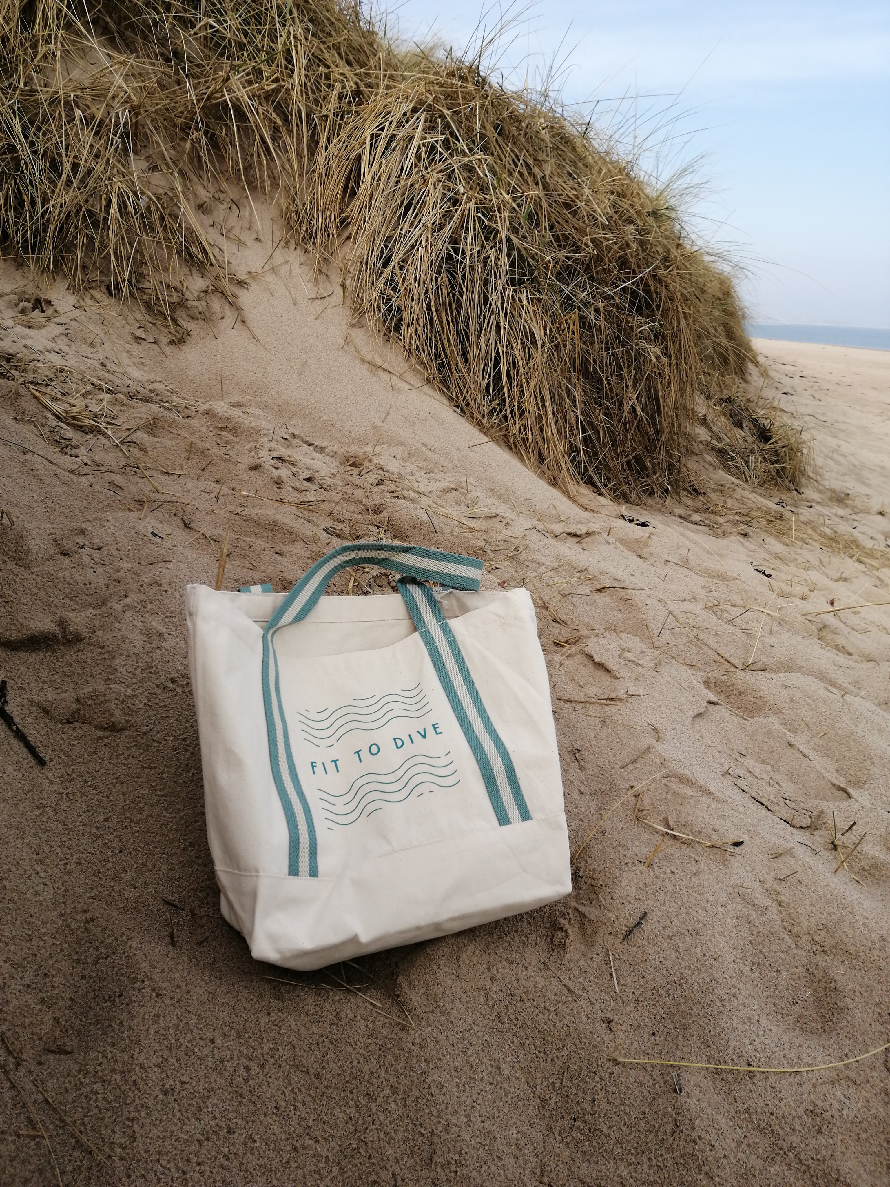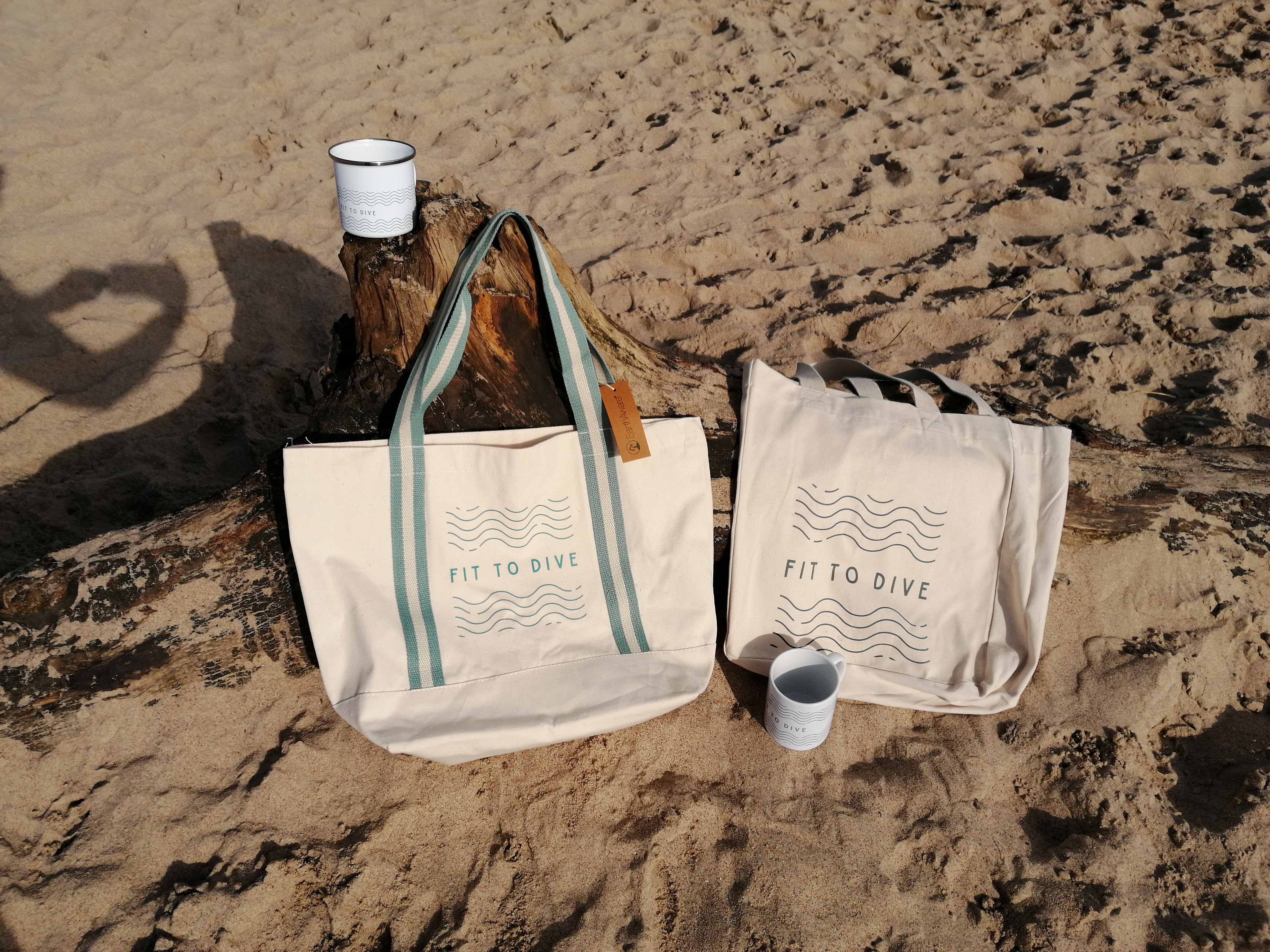 I was most impressed with the beach bag. Love the colour and the texture of the bag. It’s good quality organic cotton. It’s not a huge beach bag, just handy for a few things. It won’t carry all dive kit, but would work for mask, snorkel/googles and a towel. I plan to use it for yoga classes.